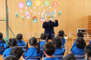 先生からのお楽しみはペープサート「ゆきだるまのかきごおり」でした♪