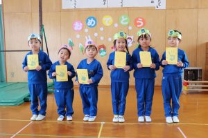 1月生まれは、こあら組2名、かもめ組3名、あぽろ組1名、みんなで6名でした♪