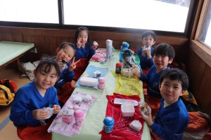 たくさんすべった後はお家の方が作ってくれたおいしいおにぎりを食べました。